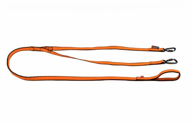 Non-stop dogwear Bungee Leash Double er en kjørestrikk med integrert Y-bånd. Kjørestrikken er utviklet for konkurransebruk, men passer også for de aktive hundeeier som ønsker å ha to hunder i trekk samtidig. Bungee Leash Double demper rykk og napp for både deg og hunden. Selve Y-båndet er statisk, resten av kjørestrikken er elastisk. Kjørestrikken kommer med twist-lock karabinkrok som automatisk låser seg. Kroken roterer slik at kjørestrikken ikke vrir seg.